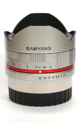 Samyang Objectif à mise au à mise au poing manuelle Fisheye F2.8 pour Fuji X Argenté. à mise au poing manuelle Fisheye F2.8 pour Fuji X